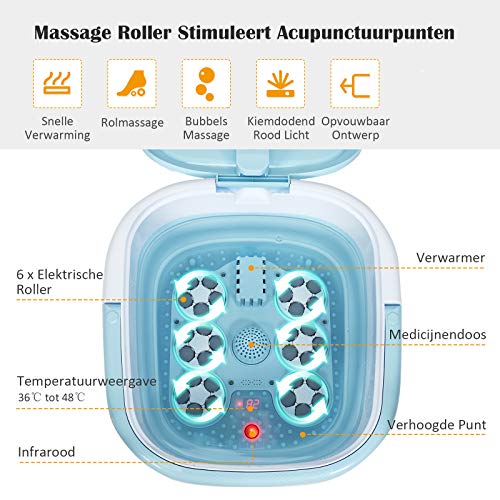 Specification: COSTWAY Voetbad Massager, Voetbad Spa met instelbare verwarmingstemperatuur, opvouwbare bad voor gemakkelijke opslag…
