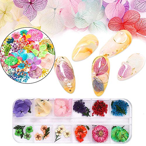 3D natuurlijke droge bloemen: schattige bloem in verschillende kleuren. Onze gedroogde nail art-bloem bevat madeliefjes, hortensia, gedroogde kantbloemen, narcissen en groen blad. U zult genieten van de kleurvariëteiten die onze collectie gedroogde bloemen te bieden heeft!