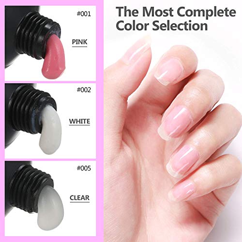 💐🌸 【Er zijn drie kleurgels om uit te kiezen, 30 ml voor elke kleur】: wit, transparant, roze, ze hebben allemaal een goede glans en een zeer hoge viscositeit. Met de extension gel kun je niet alleen je nagels verlengen, maar ook diamanten en andere versieringen toevoegen. Het kan ook worden gebruikt als nagelversterker om onze natuurlijk groeiende nagels beter te beschermen.