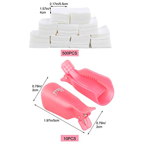 Nagellakverwijderaar, clips, 10 stuks, acryl, nagellakverwijderaar, gereedschap met 500 stuks nagelclips, roze