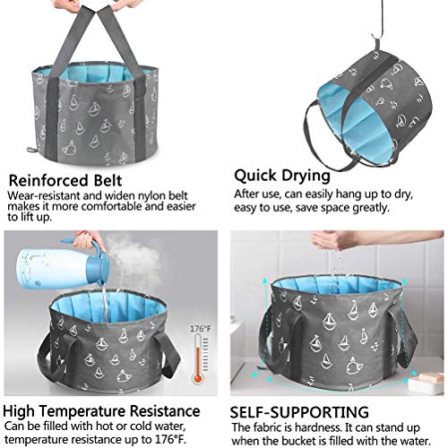 【100% waterdicht】: dubbellaags stofdesign, de binnenste laag bestaat uit lekvrij, hoogwaardig PEVA-materiaal, dat heet water van 176 °F (176 °F) weerstaat en bij hoge temperaturen niet vervormt. Het unieke geplisseerde design biedt een effectieve grip en houdt de spa-emmer na het vullen met water rechtop en voorkomt leeglopen.
